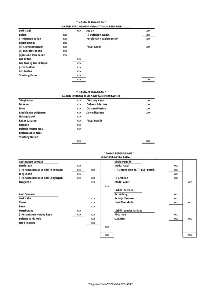 Penyata untung rugi ( profit loss statement ); Rekod perniagaan anda guna template akaun perniagaan excel sahaja.